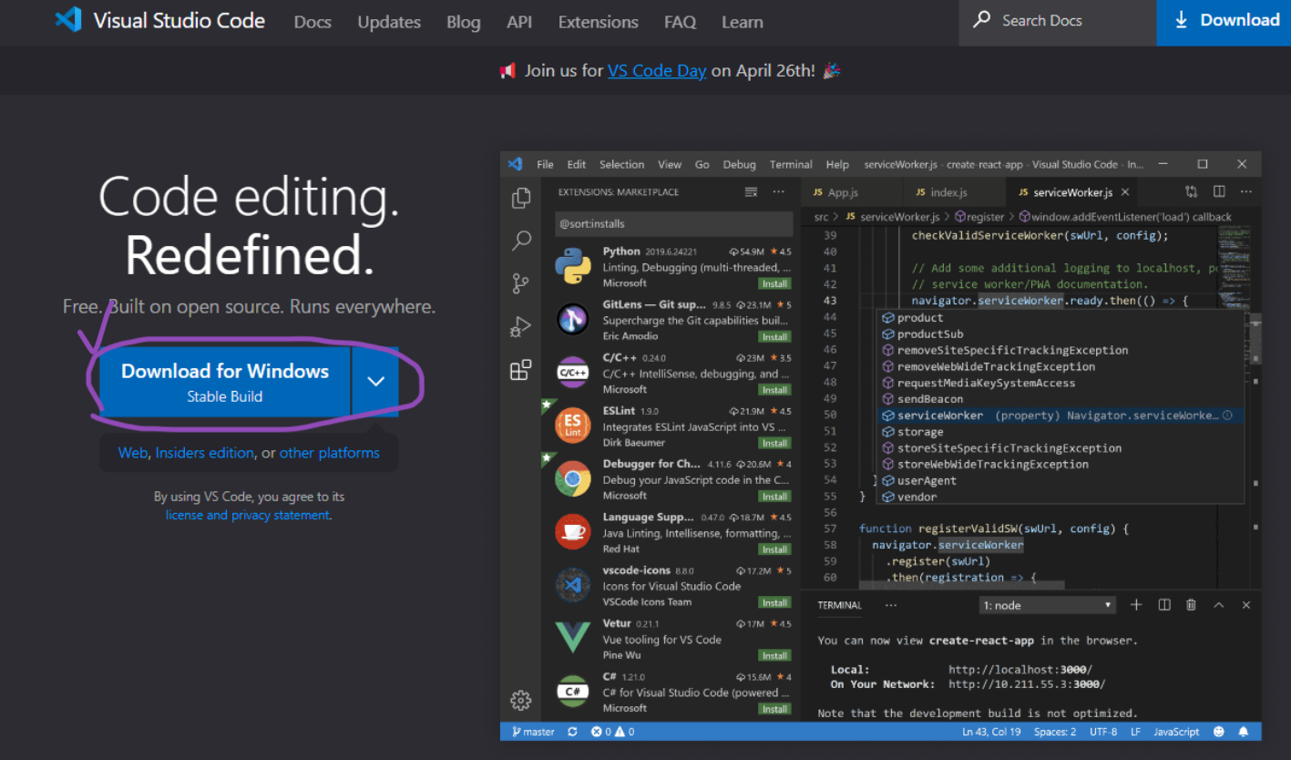 Visual Studio Code is a code editor redefined and optimized for building and debugging modern web and cloud applications. Visual Studio Code is free and available on your favorite platform - Linux, macOS, and Windows.