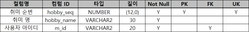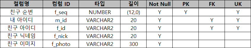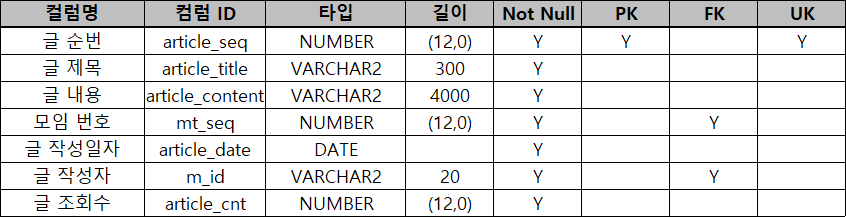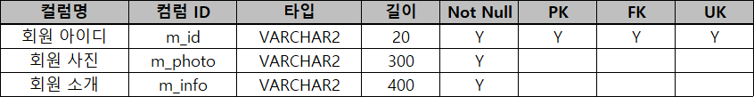 프로젝트에서 사용한 테이블 정보는 다음과 같다.