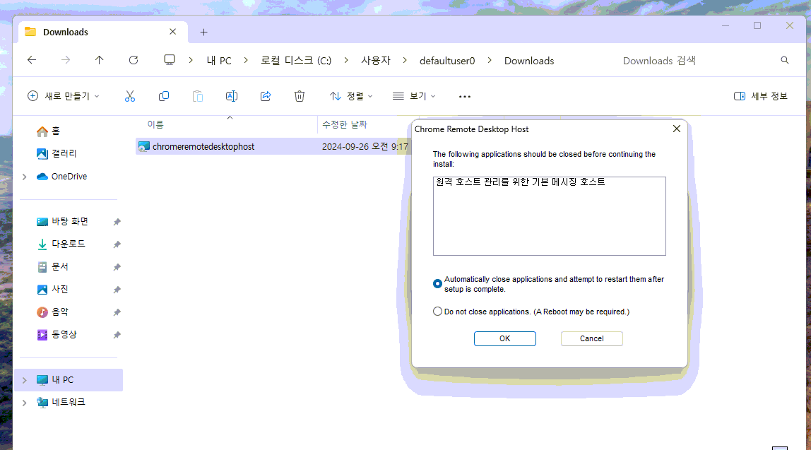 Chrome 원격 데스크톱을 설치 하려고 하시는데 계속 오류가 나서 문의 전화 옴